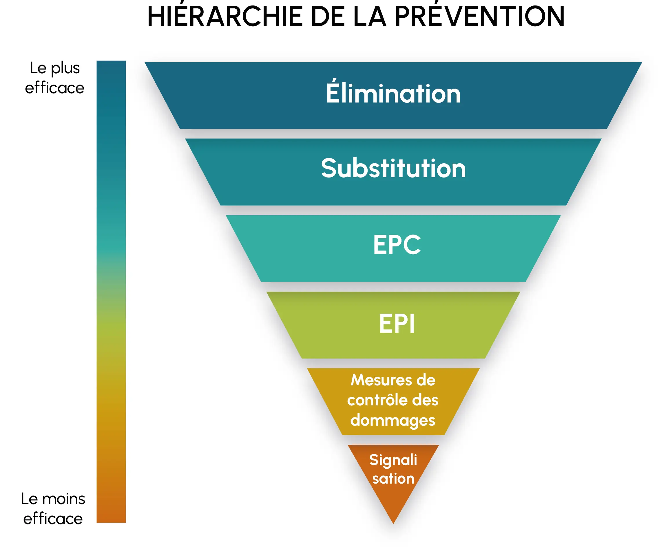 Les mesures prioritaires doivent donc être d’éviter le risque, de le combattre à la source et de mettre en place des mesures de protection collective.
